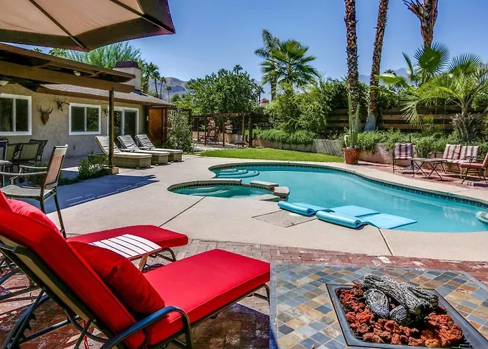 Die 2-Zimmer- Serenity Palm Springs Ranch bietet einen privaten Swimmingpool sowie Wandern, Reiten und Bowling für aktive Gäste.